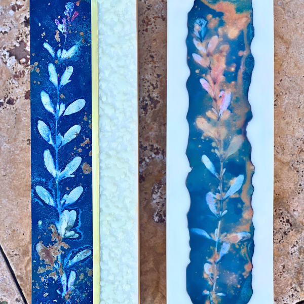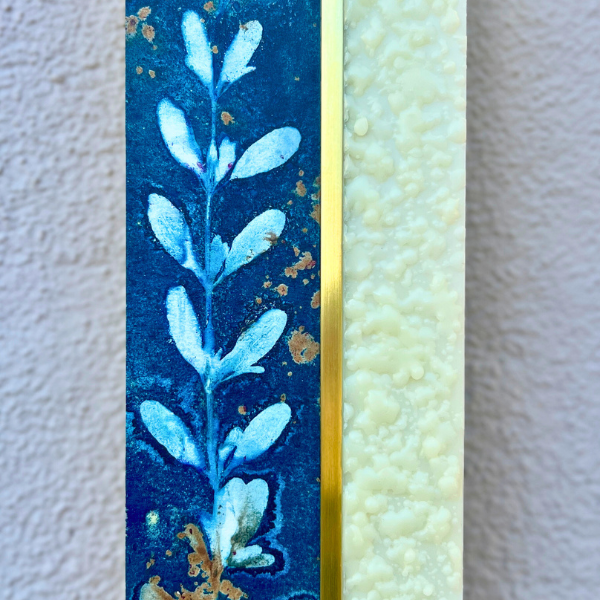 • Cyanotype, encaustic, and brass