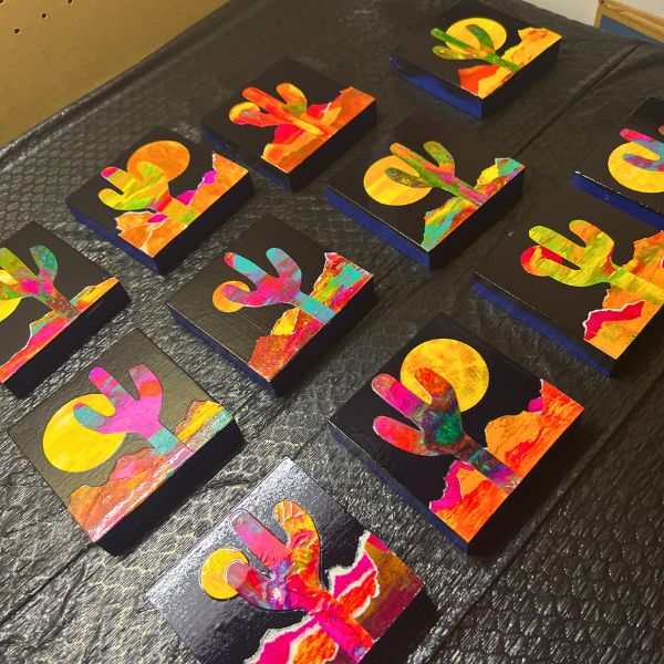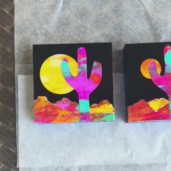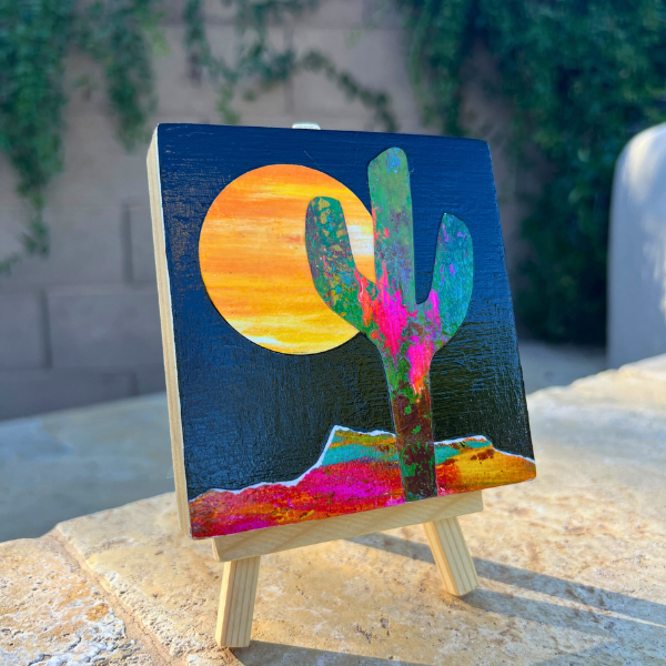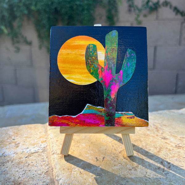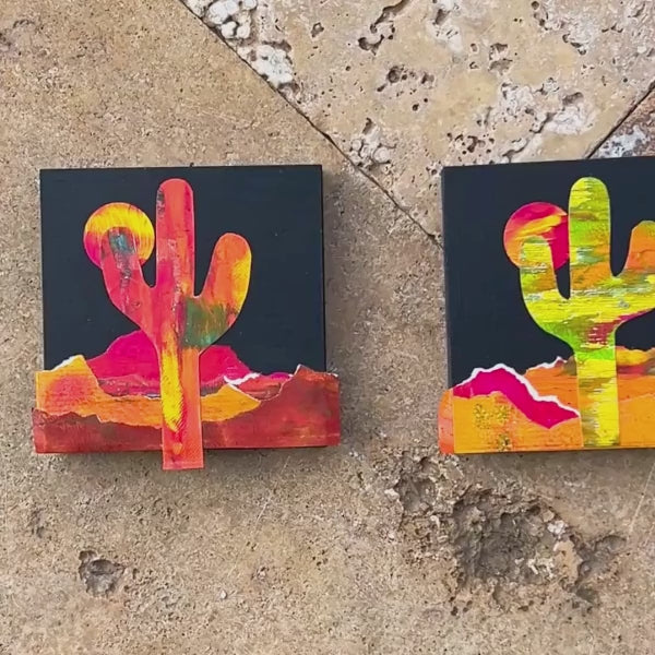 These 4×4 inch cactus collage minis are bursting with color and personality.