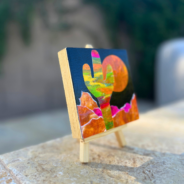 These 4×4 inch cactus collage minis are bursting with color and personality.