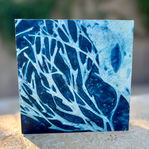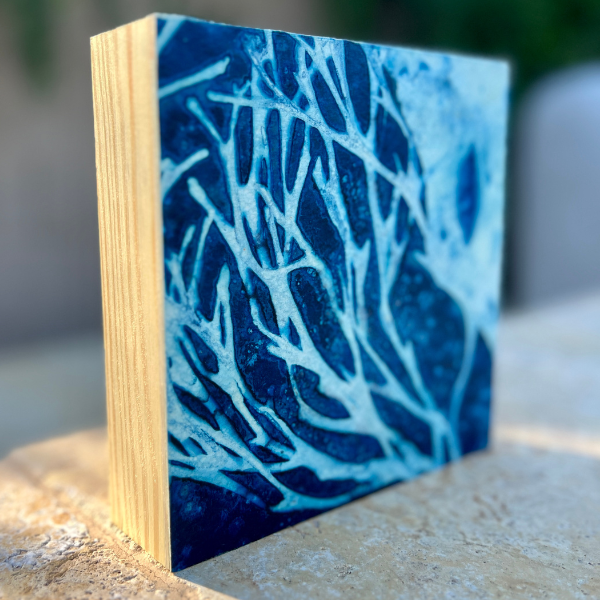 Printed on textured watercolor paper, this 6x6 original print is sealed under cold wax then mounted on a 1.5" gallery depth birch wood panel. Perfect for shelf or wall display, especially when combined with other small works.